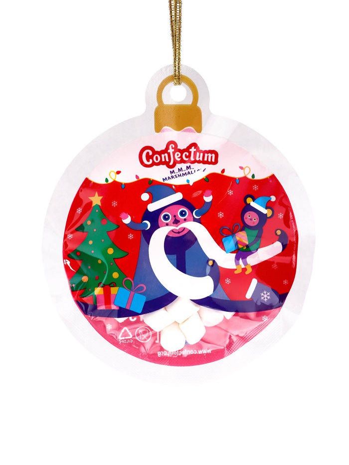 - Форма шара: Круглые конфеты напоминают снежные комья или елочные игрушки. Необычная форма выделяет их среди классических маршмеллоу.
