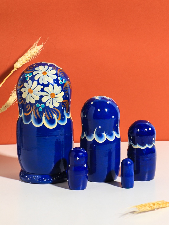 Матрешка "Настёна", синее платье, белые цветы, 18 см,5 кукольная, ручная роспись