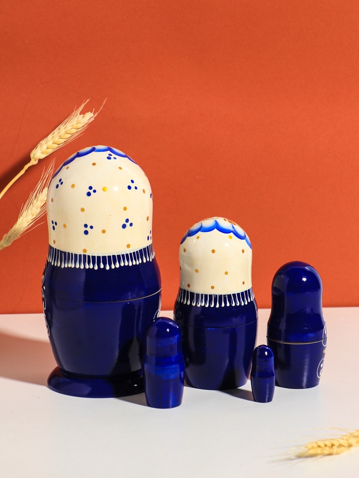 Технические характеристики Матрешка "Русская красота", белый платок, 18 см ,5 кукольная, ручная роспись