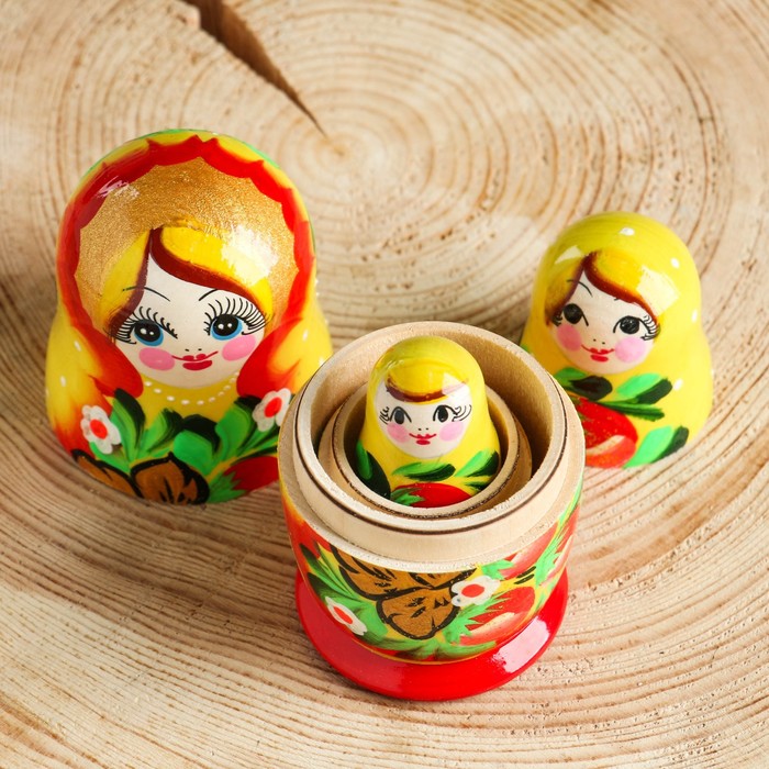 Матрёшка «Земляничка», жёлтое платье, 3 кукольная, 10 см