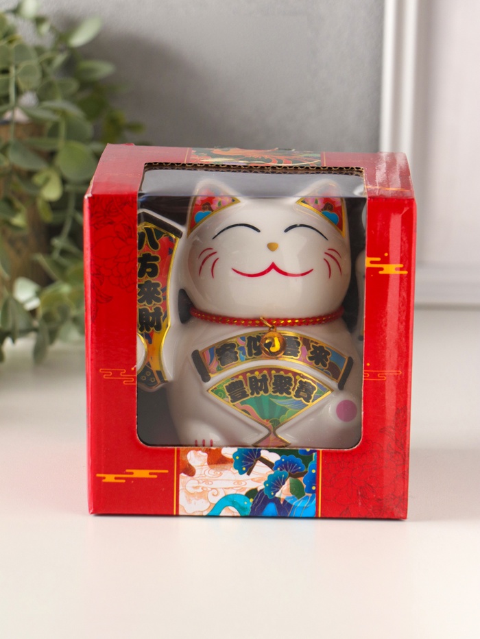 Маятник настольный антистресс от солнечной батареи «Манэки-нэко с веером», керамика, 10×11×10.8 см