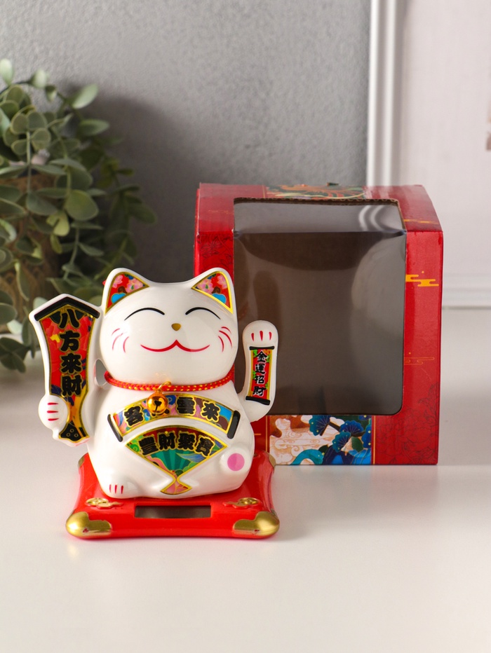 Этот солнечный маятник — больше, чем украшение. Это живой уголок спокойствия на вашем столе. Керамическая фигурка знаменитого японского кота с веером плавно и бесшумно качает лапой, создавая гипнотический ритм. Движение рождает солнечный свет, поэтому устройство не требует батареек и никогда не останавливается, пока в комнате есть свет.