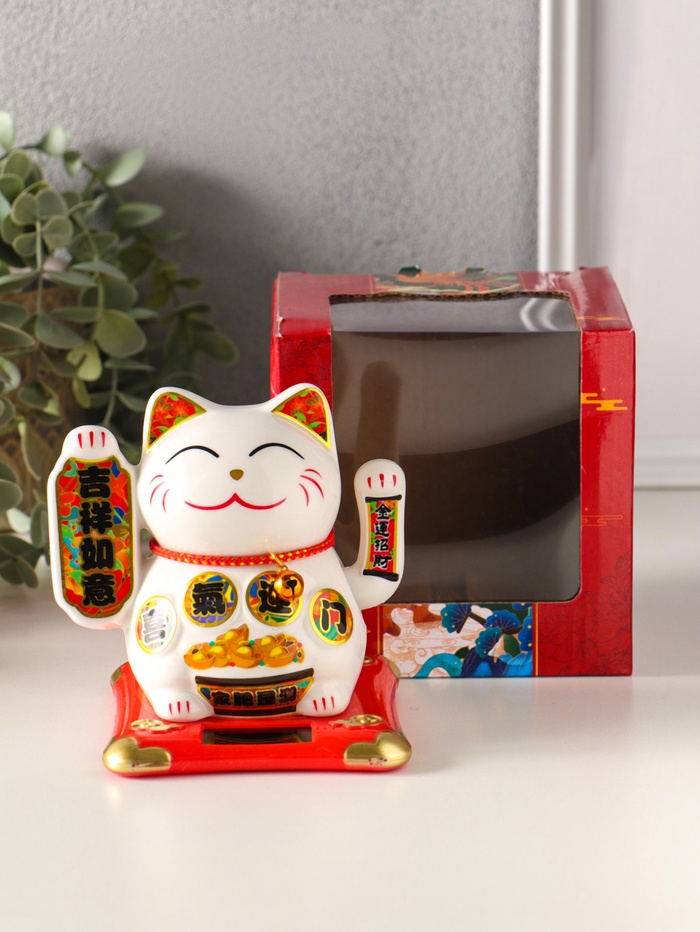 Маятник настольный антистресс от солнечной батареи «Манэки-нэко с золотыми слитками», керамика, 10×11×10.8 см