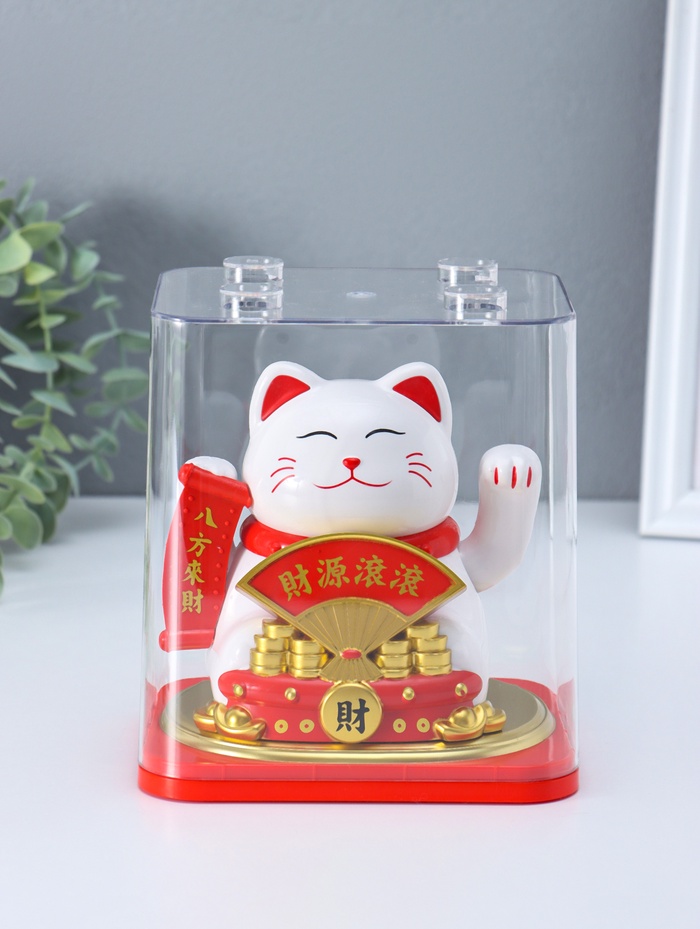 Технические характеристики Маятник настольный антистресс от солнечной батареи «Белый кот Манэки-нэко с веером», 11.2×14.3×15.3 см