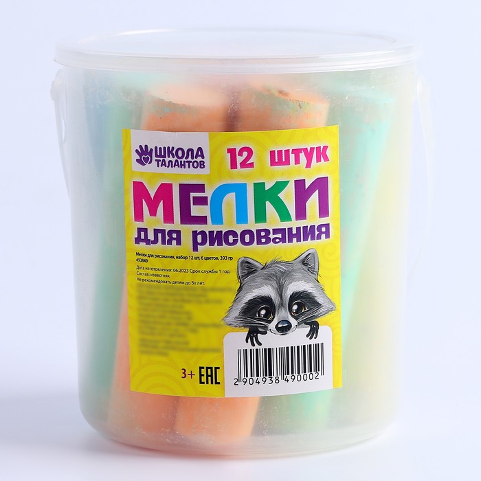 Мелки для рисования, набор 12 шт., 6 цветов, 393 г