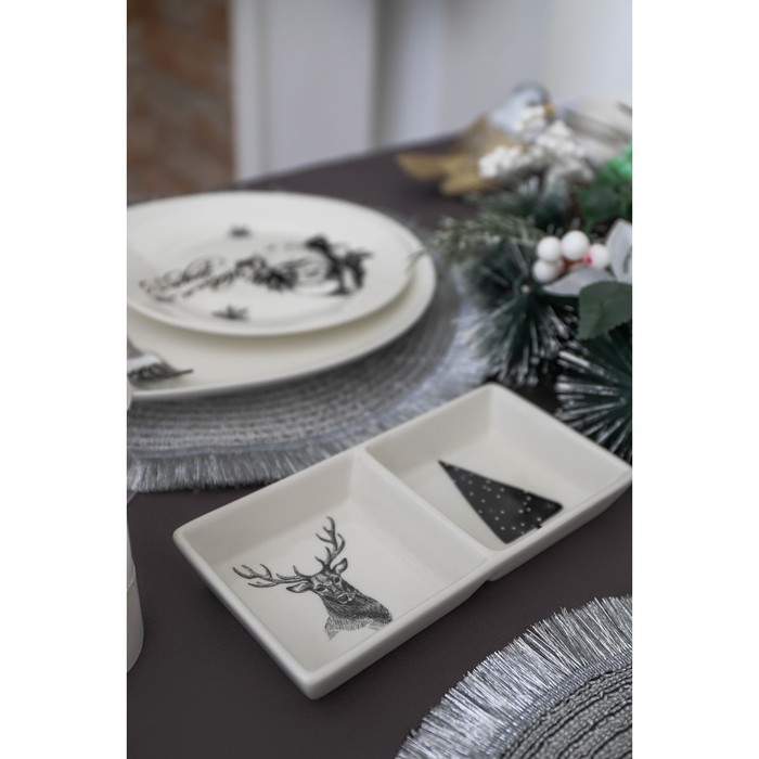 Менажница 2 ячейки Доляна «Дед Мороз и олени», 19,8×9,7×3 см, цвет белый
