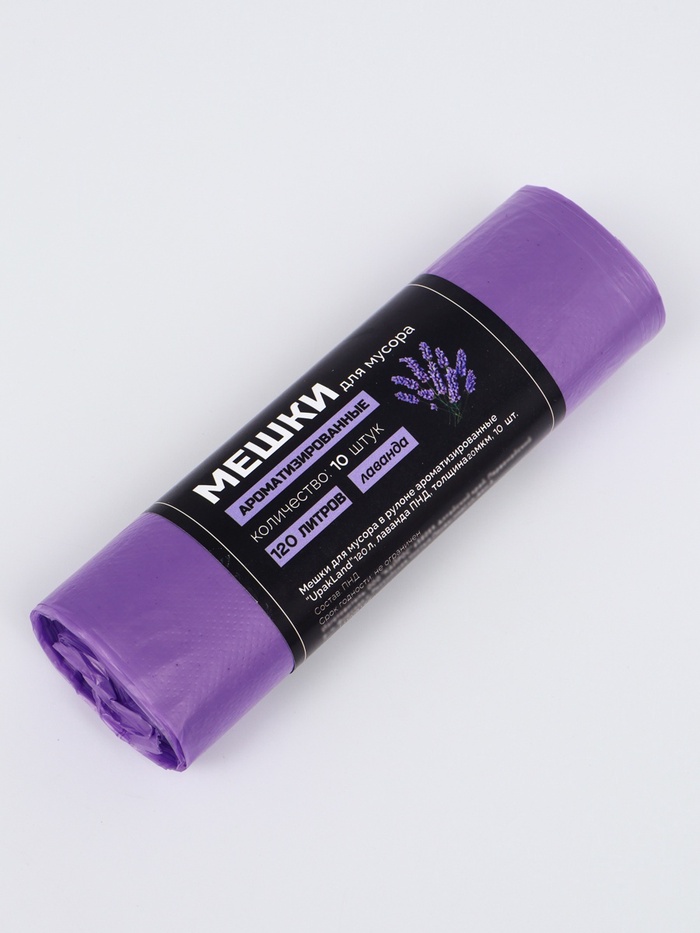 Мешки для мусора в рулоне ароматизированные UpakLand 120 л, лаванда ПНД, толщ 20 мкм, 10 шт.