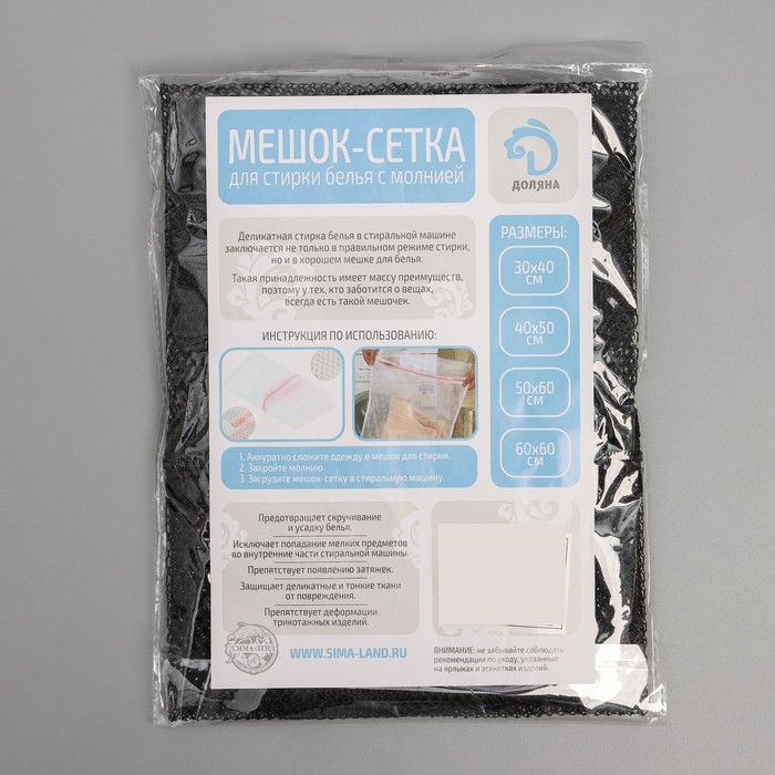Технические характеристики Мешок для стирки Доляна, крупная сетка, 50×60 см, цвет чёрный