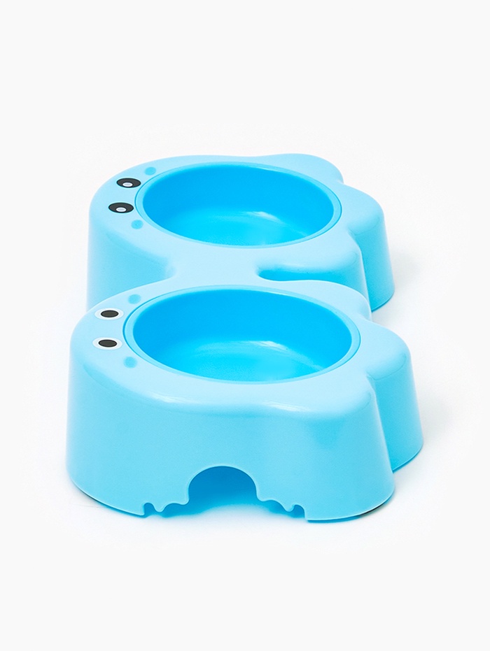 Двойная миска объединяет практичность и игривый дизайн: два отсека по 160 мл на общей голубой подставке с забавным принтом. Подходит как для кошек, так и для мелких собак.