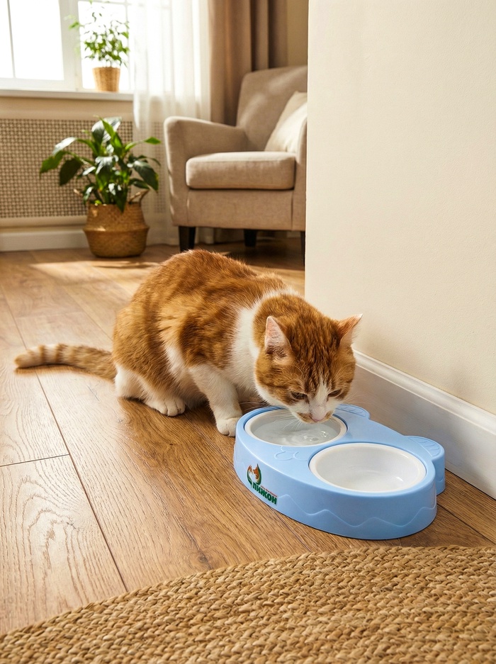 Двойная миска «Киса» объединяет два фигурных лотка по 160 мл на общей голубой подставке. Подходит как для кошек, так и для мелких собак — практично, компактно и с настроением.