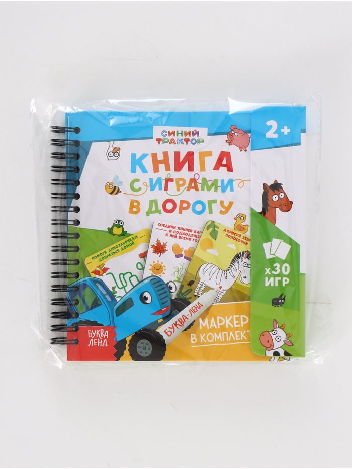 Многоразовая книга с играми «Синий трактор», 30 мини-игр + маркер