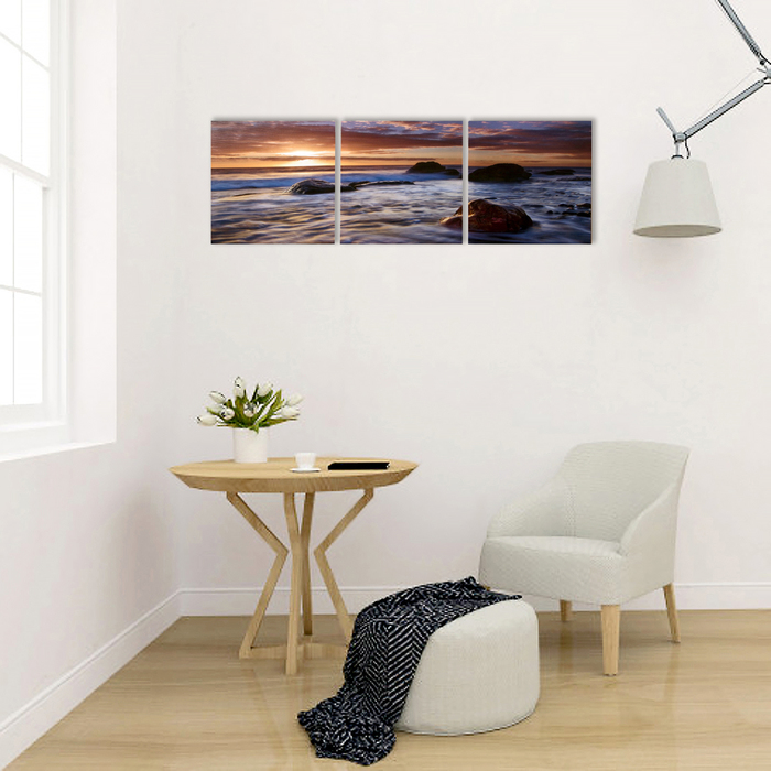 Модульная картина "Камни в море" (3-35х35) 35х105 см