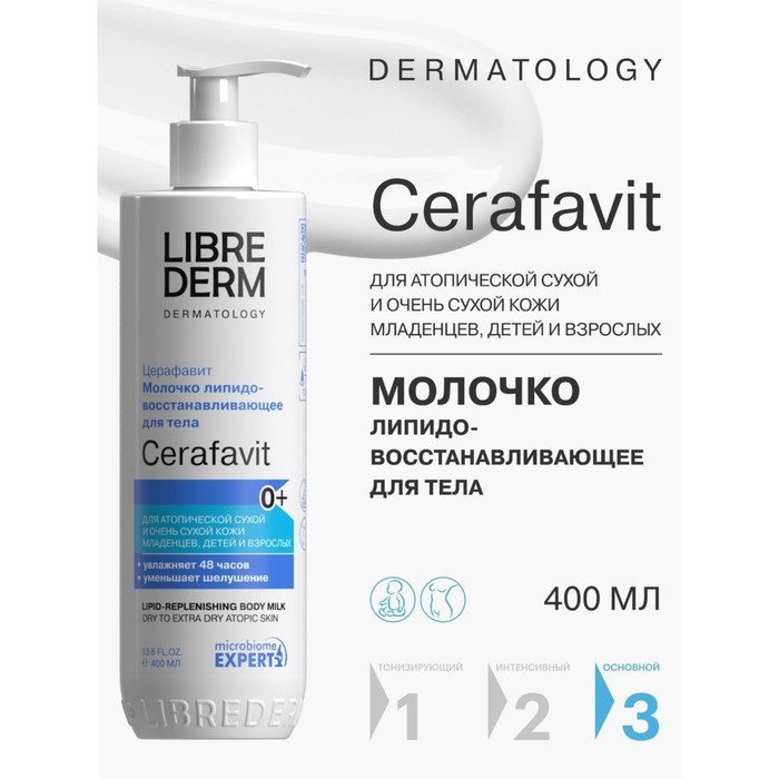 Молочко Librederm Cerafavit для сухой и очень сухой кожи с церамидами и пребиотиком, 400 мл