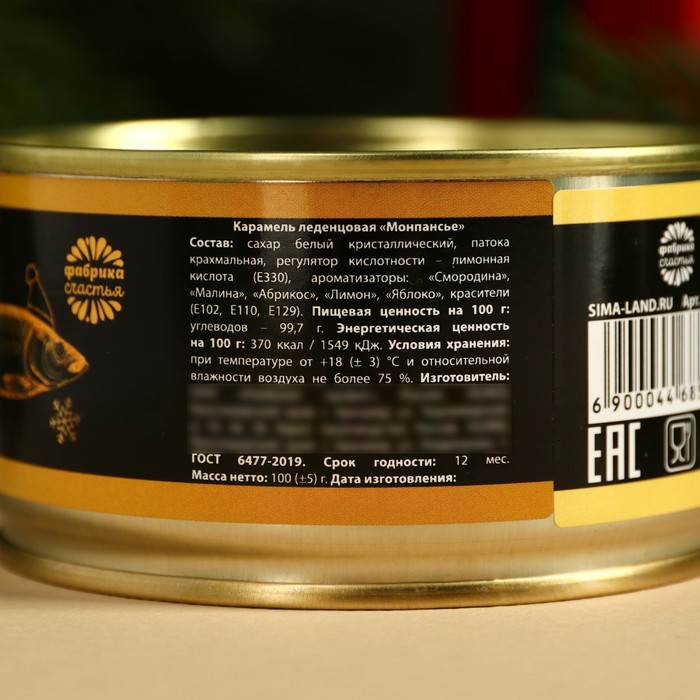 Технические характеристики Леденцы монпансье новогодние в консервной банке «Консервированный», набор 3 шт. × 100 г