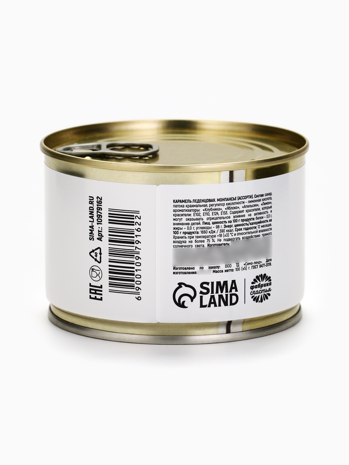Леденцы «Монпансье» в консервной банке — сладкий сюрприз к чаю с юмором. Настоящая консервная банка, открывается с тем самым звуком!