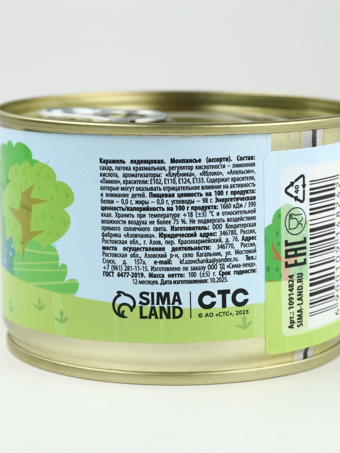 Технические характеристики Монпансье в консервной банке «Три кота»