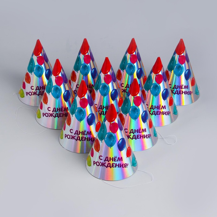 МП Колпак голографический "С днём рождения" 7870869 (6 шт.)