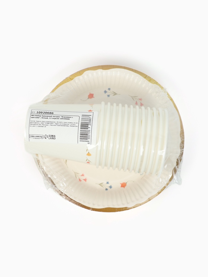 Технические характеристики МП Набор бумажной посуды "Керамика с цветами", белый, 12 персон
