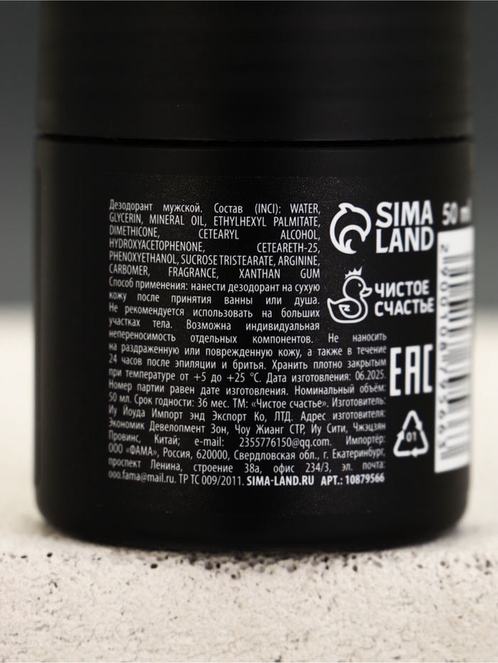 Технические характеристики Мужской дезодорант "100% мужчина", 50 мл