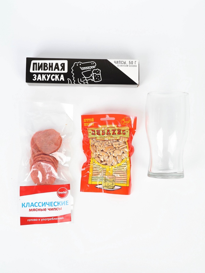 Технические характеристики Мужской гифт с бокалом для пива и снеками