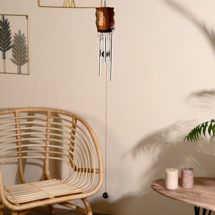 Технические характеристики Музыка ветра "Сова в полоску" дерево, металл 5х5х40 см