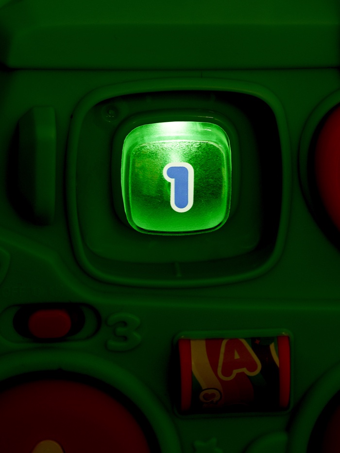 - Цифровые кнопки с подсветкой помогают изучать первые цифры.
