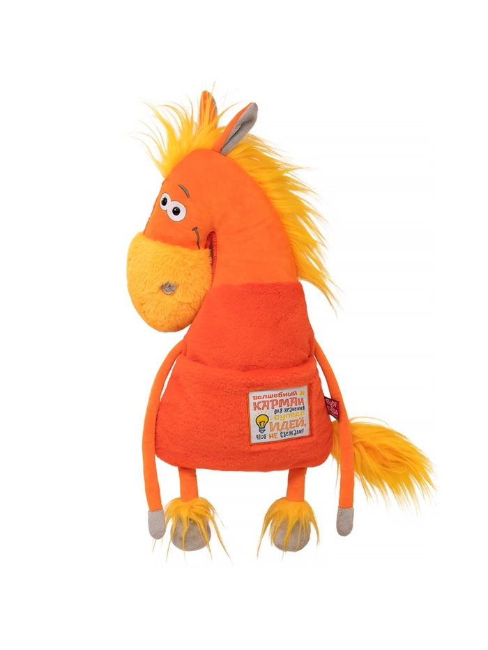 Идейный конь-подушка — это очаровательный персонаж, который станет любимым другом для вашего ребёнка или стильным аксессуаром в интерьере. Его яркий оранжевый мех и необычный дизайн создают атмосферу тепла и уюта, а удобная форма делает его идеальным спутником для игр или отдыха.