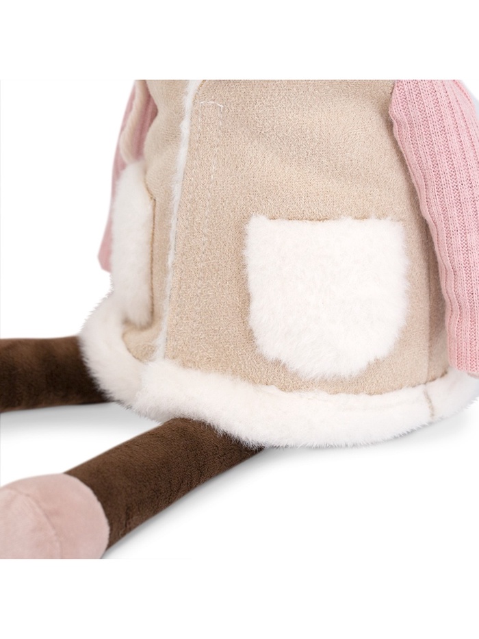 - Игрушка выполнена в виде милой лошадки с мягкой текстурой и стильной одеждой: розовой водолазкой, бежевой безрукавкой и прядками цвета "пепел на лепестках сакуры".