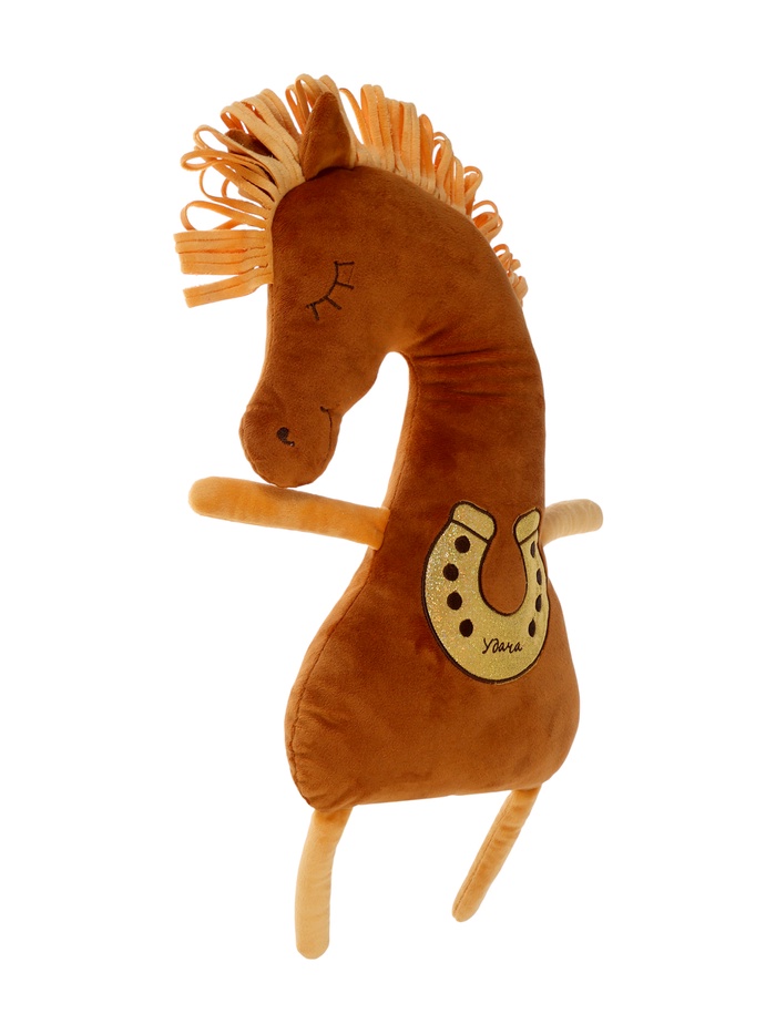 Счастливая лошадка — это очаровательный персонаж, который станет любимым другом для вашего ребёнка или стильным аксессуаром в интерьере. Её мягкий коричневый мех и добрый облик создают атмосферу тепла и уюта, делая её идеальным спутником для игр дома или в качестве декора.