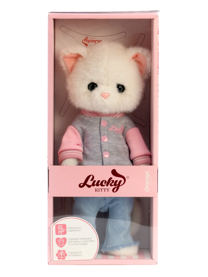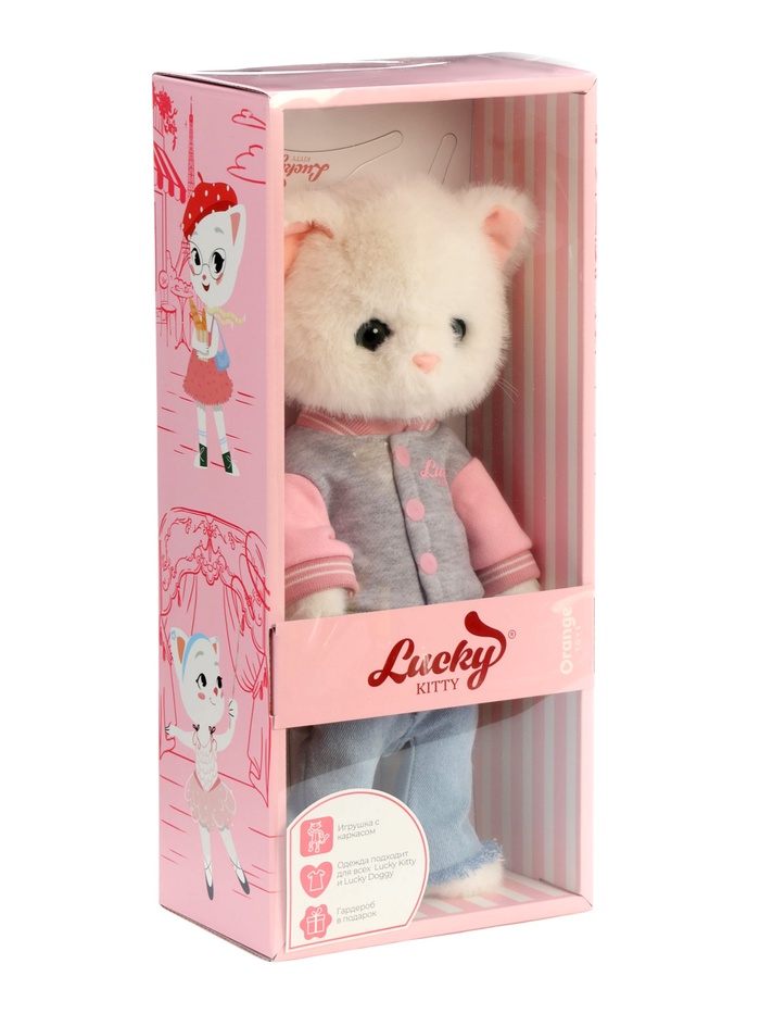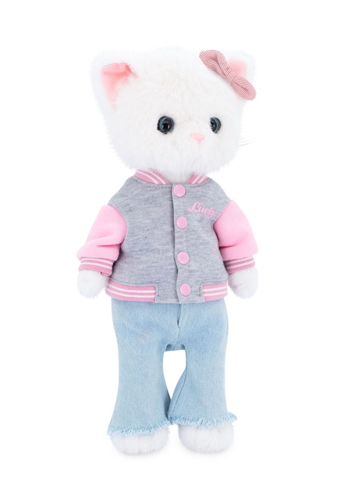 Мягкая игрушка «Lucky Sophie: Городской шик» — это стильная белоснежная кошечка в современном повседневном образе. Серо-розовый бомбер с контрастными рукавами, светлые джинсы и нежные детали делают игрушку особенно выразительной. Образ получился модным, аккуратным и очень «городским» — с настроением прогулок, уютных встреч и маленьких детских историй.