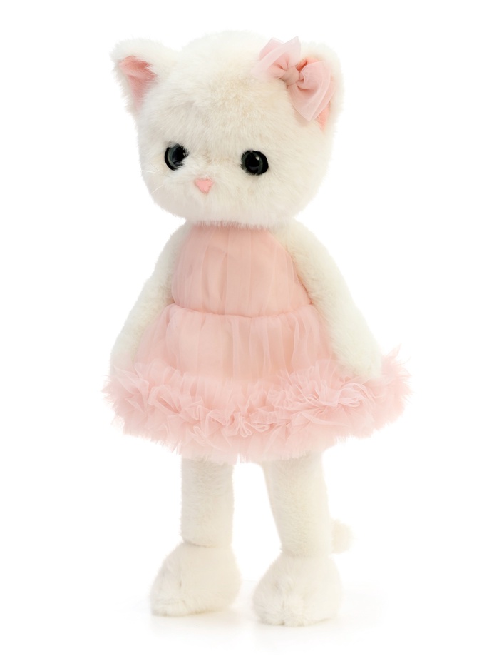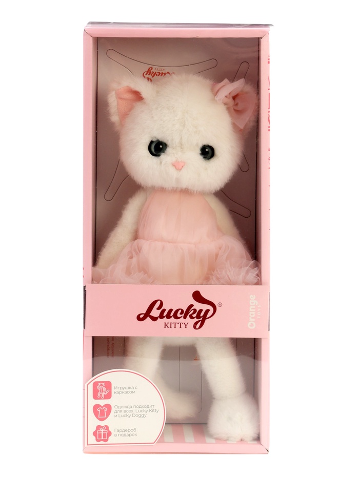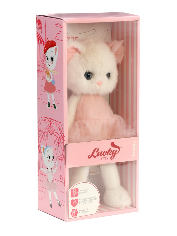 Мягкая игрушка «Lucky Sophie: Сладкая вата» — это очаровательная белоснежная кошечка в воздушном и по-настоящему нежном образе. Лёгкое платье пудрово-розового оттенка с пышной юбкой и декоративной отделкой создаёт ощущение мягкости и лёгкости, а аккуратный бантик дополняет образ и делает его ещё более трогательным. Игрушка выглядит изящно, нарядно и сразу ассоциируется с чем-то тёплым, уютным и праздничным.