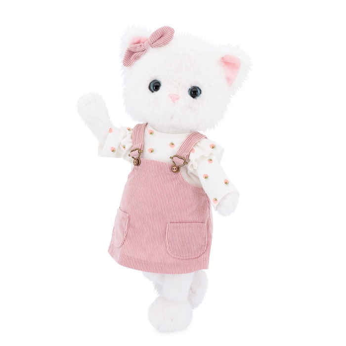 Мягкая игрушка «Lucky Sophie: Весенняя мелодия» — это нежная белоснежная кошечка в лёгком и романтичном образе. Розовый сарафан в мелкий рубчик, кофточка с деликатным узором и аккуратный бантик создают гармоничный наряд с по-настоящему весенним настроением. Игрушка выглядит мягко, нарядно и очень трогательно, словно персонаж доброй детской истории.