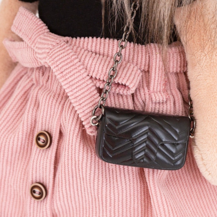 - аксессуар в виде мини-сумочки на цепочке дополняет образ;
