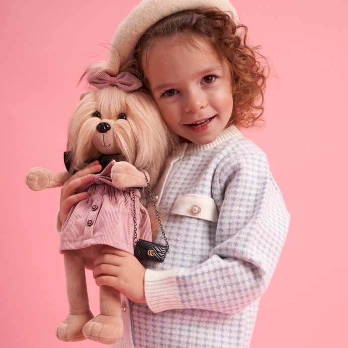 Мягкая игрушка «Lucky Yoyo: Идеальный образ» — это изящный и модный персонаж с продуманным до мелочей стилем. Чёрный топ, пудровая юбка с пуговицами и аккуратный бантик формируют элегантный городской образ. Миниатюрная сумочка на цепочке добавляет завершённости и подчёркивает характер игрушки — уверенный, нежный и стильный.