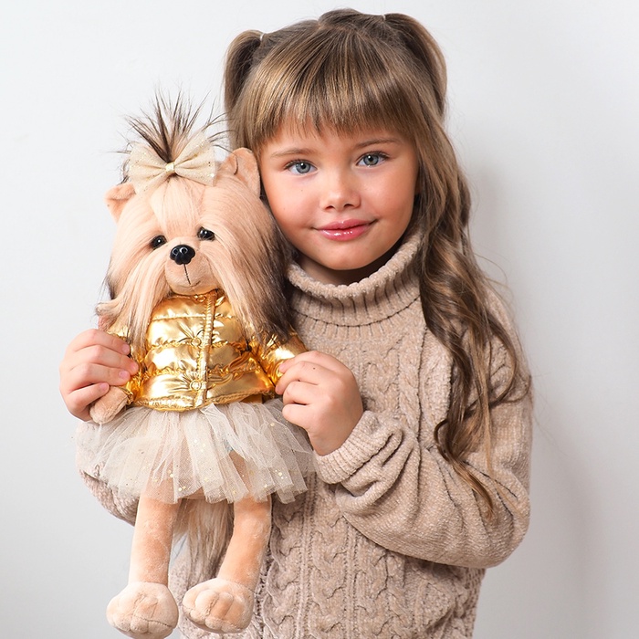 Мягкая игрушка Lucky Mimi — это милый пёсик, который одет в очаровательный пуховичёк золотого оттенка и пышную юбочку. Изделие выполнено из приятного на ощупь материала. Такая игрушка станет отличным подарком для ребёнка и взрослого.