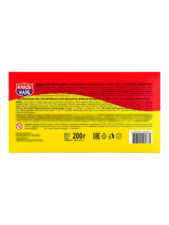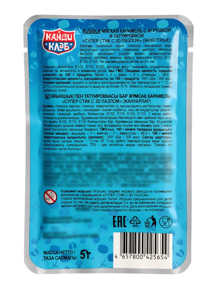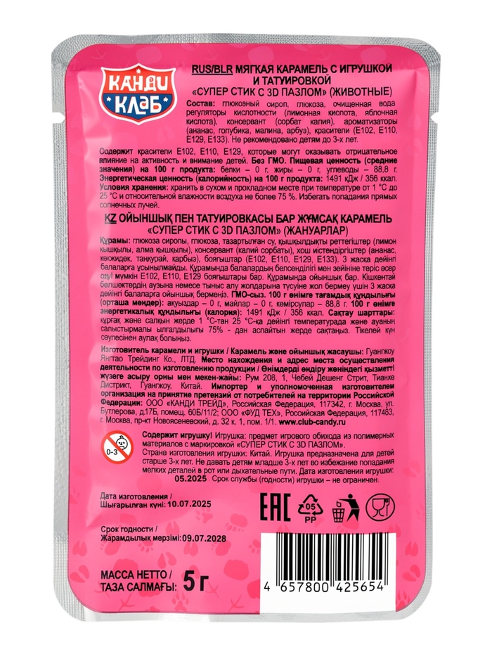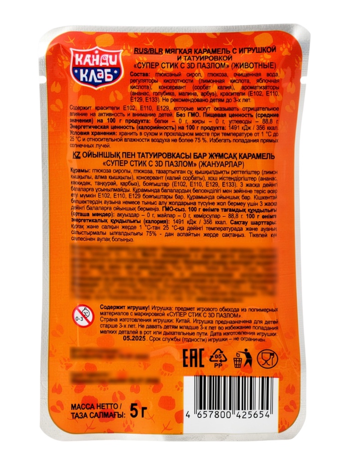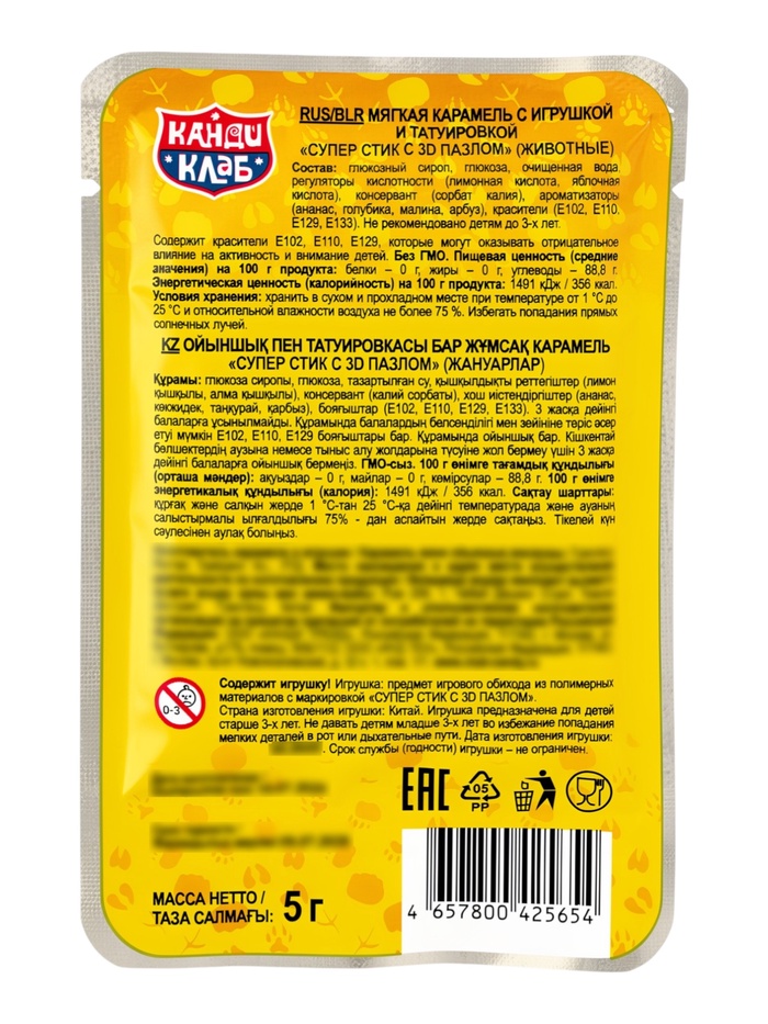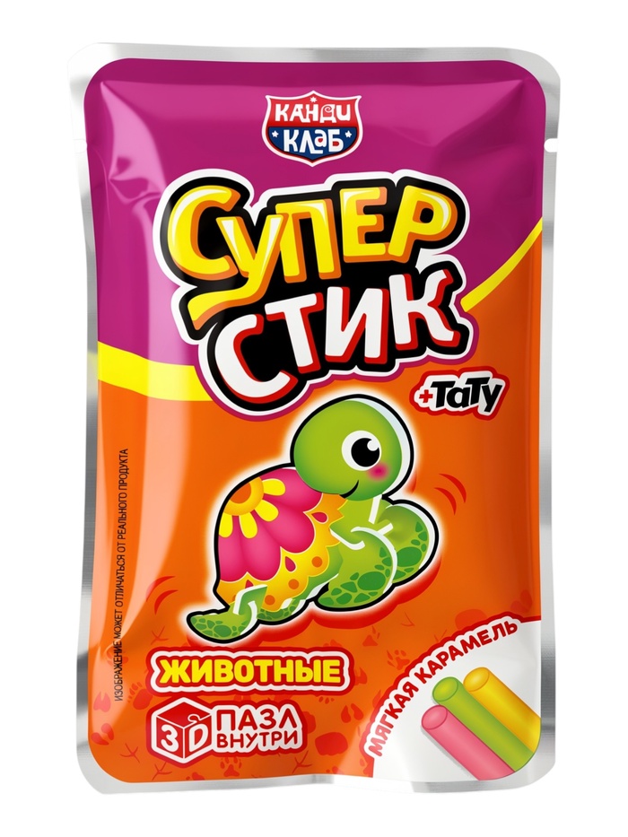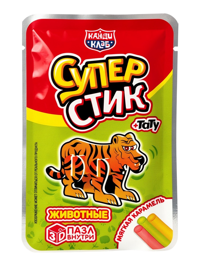 Мягкая карамель с игрушкой и татуировкой "Супер Стик с 3D пазлом" (животные) 5гр