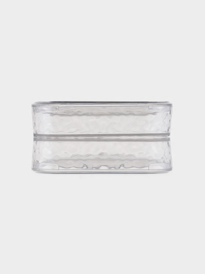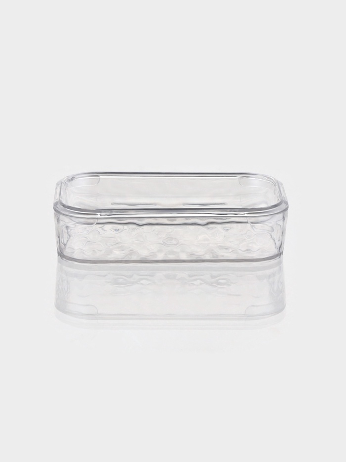 Прозрачная мыльница с решёткой — простое и гигиеничное решение для хранения кускового мыла в ванной или на кухне. Прямоугольная форма и настольное размещение позволяют установить её на любой ровной поверхности: на краю ванны, на раковине или на душевой полке. Прозрачный пластик визуально не перегружает пространство, а решётка обеспечивает быстрое высыхание — мыло не размокает и служит дольше.