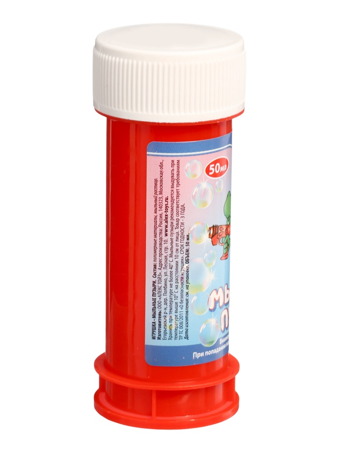 | Материалпластик, мыльный раствор | Материалы из которых произведен товарПластик, мыльный раствор | Минимальная партия12 |