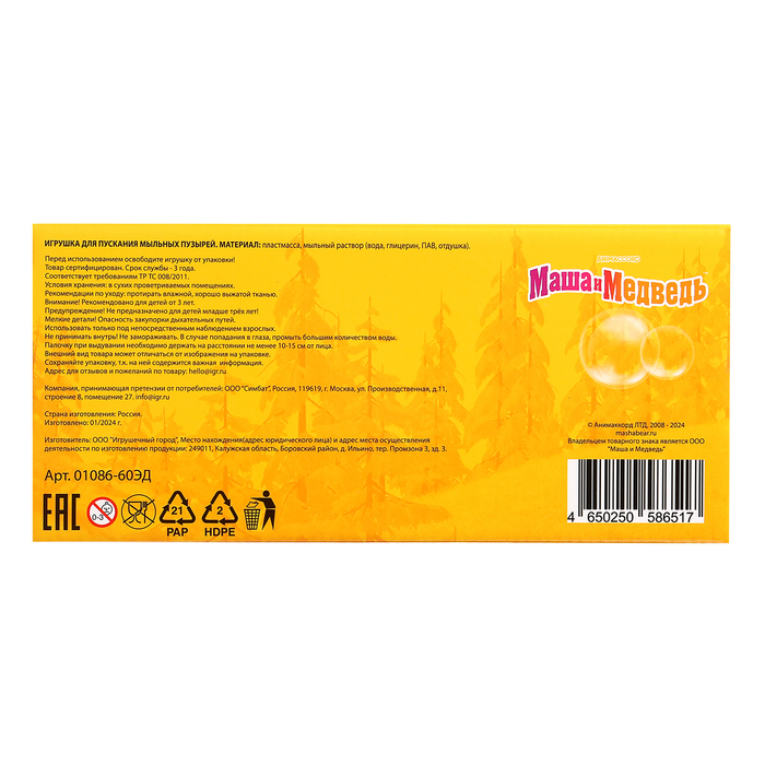Мыльные пузыри «Маша и Медведь», 60 мл