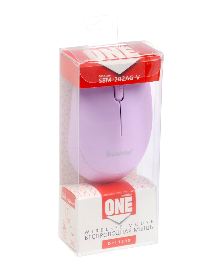 Мышь Smartbuy ONE 202AG-V, беспроводная, 3 кнопки, 1200 dpi, USB, 1хАА, фиолетовая