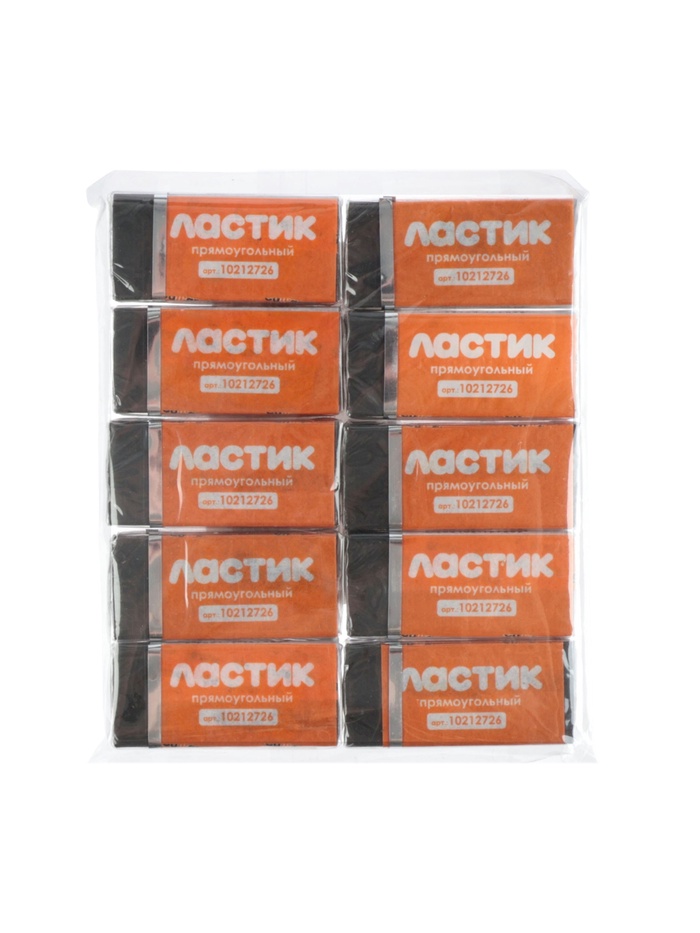 Набор 10 штук ластиков прямоугольных черных, в бумажном держателе (штрихкод на штуке)