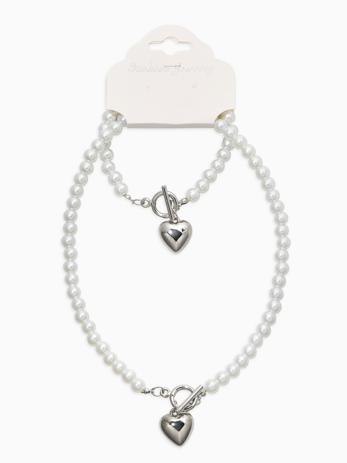 Набор 2 предмета: бусы. браслет «Жемчуг. Сердце», L=18/42 см, №8, белый в серебре