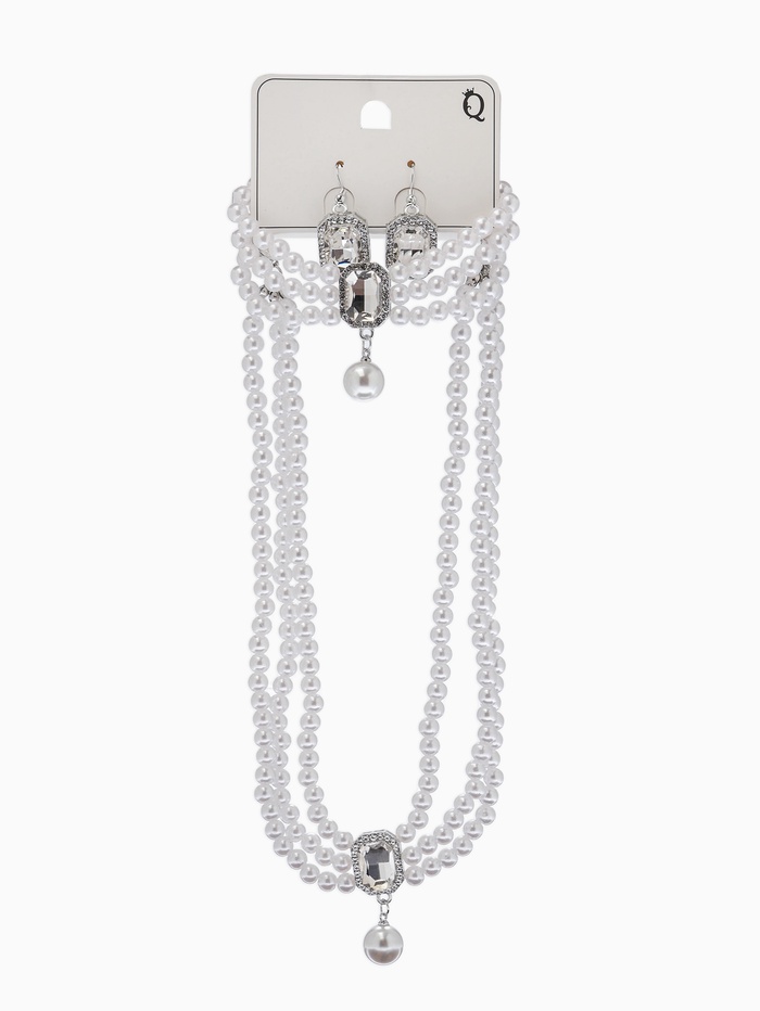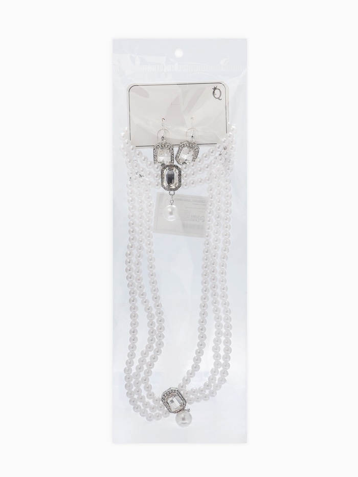 Набор 3 предмета: серьги, колье. браслет «Императрица жемчуга», белый в серебре