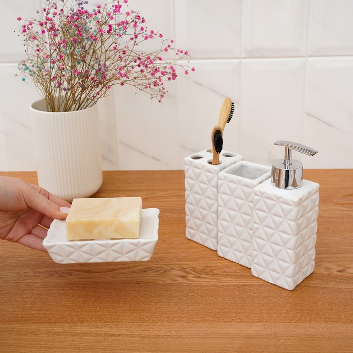Набор аксессуаров для ванной комнаты «Ромбы», 4 предмета, дозатор 250 мл, мыльница, 2 стакана, белый
