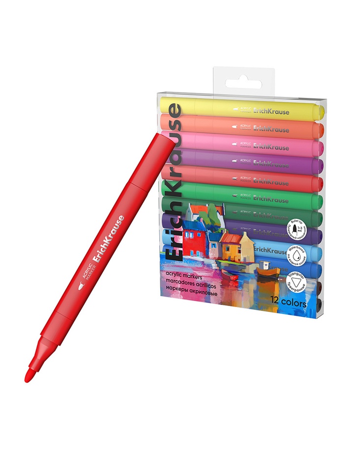 Набор акриловых маркеров ErichKrause. Art Spirit, 12 цветов, c пулевидным наконечником, МИКС