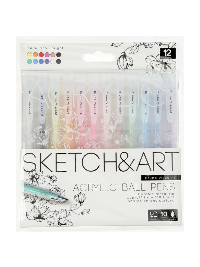 Набор акриловых ручек 12 цветов, 1.0 мм