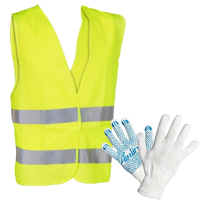 Составляющие набора | Жилет; Знак аварийной остановки; Перчатки |