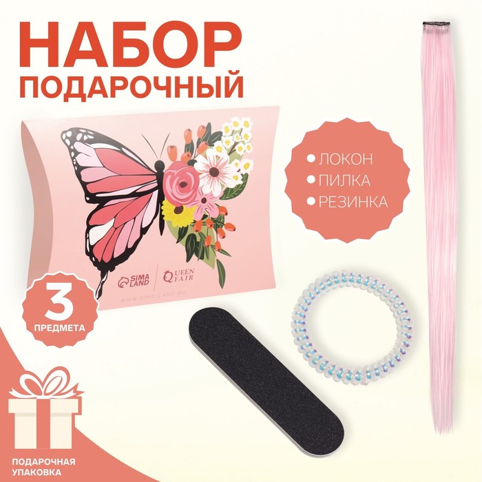 Набор «Бабочки», 3 предмета: локон на заколке, пилка, резинка