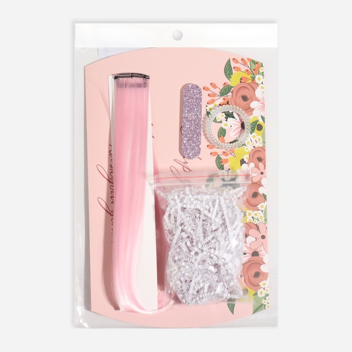 Подарочный набор порадует маленькую модницу яркими полезными аксессуарами. Пилочка аккуратно позаботится о детских ногтях, а резинка и накладная прядь помогут создавать разнообразные стильные причёски. Девочка сможет с удовольствием экспериментировать с новыми образами.