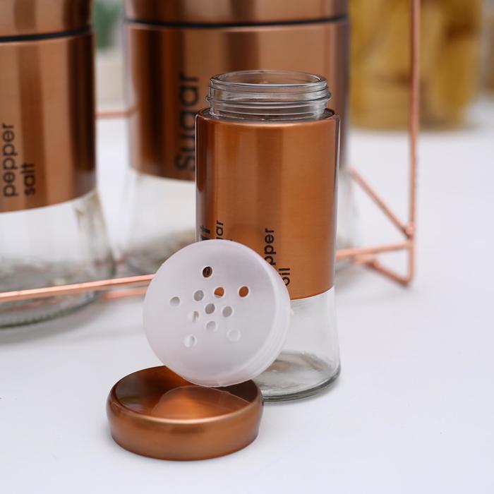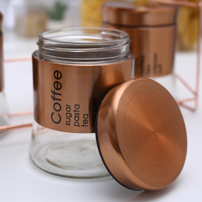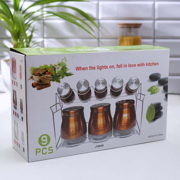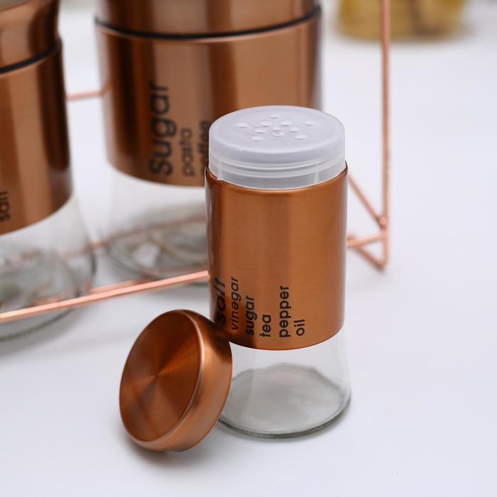 Набор банок стеклянных для сыпучих продуктов «Стиль», 28×12×31 см, на подставке, 8 шт., цвет бронзовый